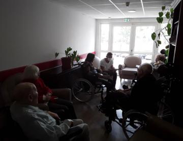 Les Jardins de Sormiou > Actualités > Après-midi aux Rez de Chaussée des Jardins de Sormiou Après-midi aux Rez de Chaussée des Jardins de Sormiou Publiée le 22/04/2020 le temps ne nous a pas permis de sortir aujourd(hui nous avons donc organisés quelques jeux avec les Résidents