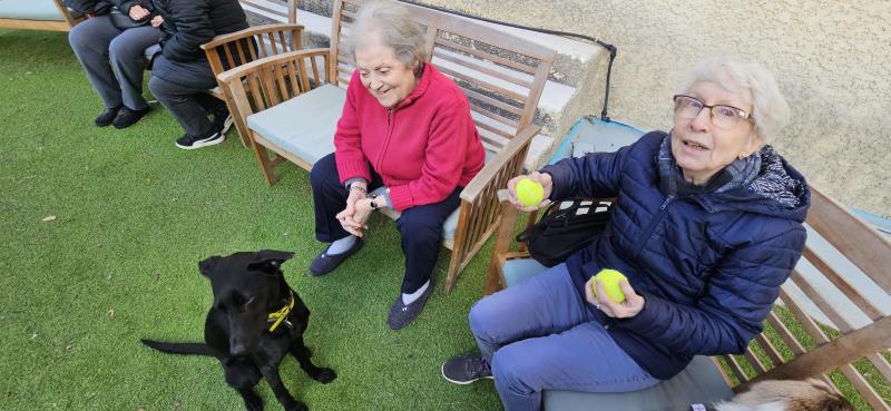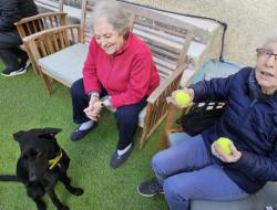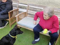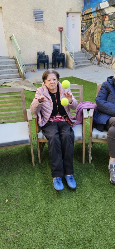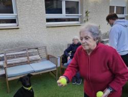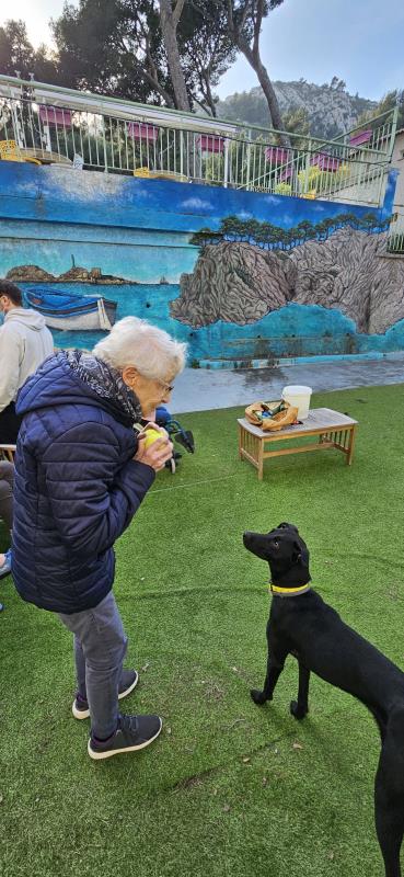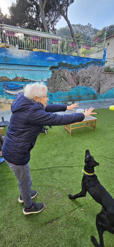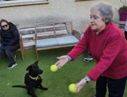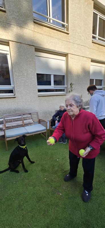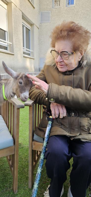 Cet après-midi, nous avons profité de la météo clémente pour faire notre premier atelier psychomoteur en extérieur. Pour l'occasion nous avons relevé le défi de faire une partie de pétanque en présence d'April et de la chèvre. Puis les filles, ont volé la vedette à l'atelier psychomoteur. Nous voila donc en train de surveiller la chèvre qui tente de gouter aux sacs et aux vêtements des résidents pendant qu'April essai de l'en dissuader. Finalement, cette dernière accepte de laisser la chèvre tranquille pour jouer avec les résidentes qui ont fortement apprécié le moment. 😉