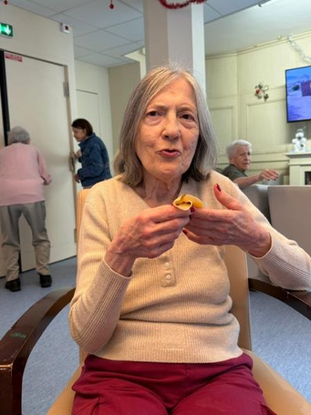 L’atelier a également favorisé la réminiscence, les odeurs et la préparation des crêpes faisant émerger souvenirs et échanges verbaux. Ce moment convivial a contribué au bien-être, à la stimulation cognitive et au maintien du lien social des résidents