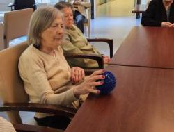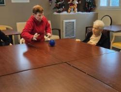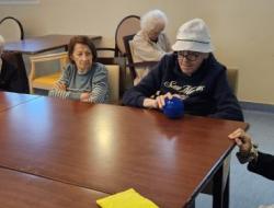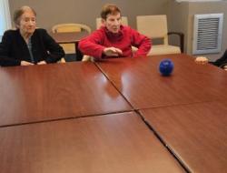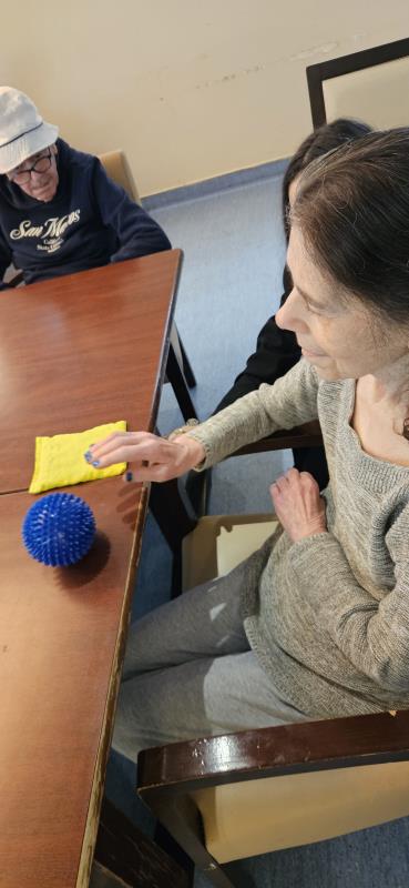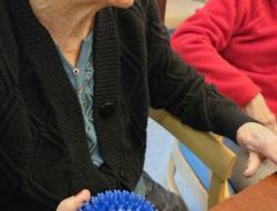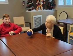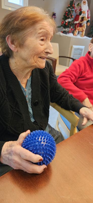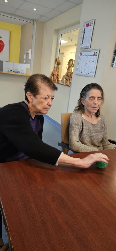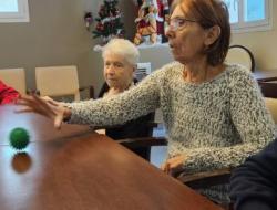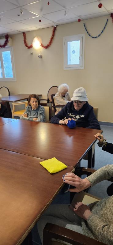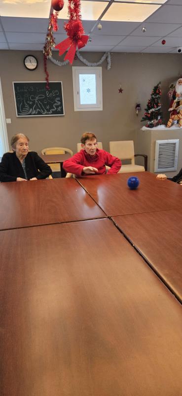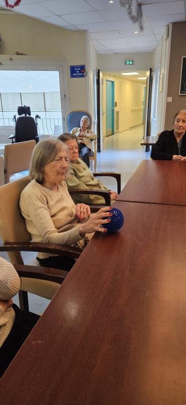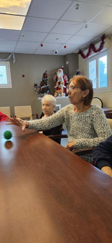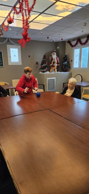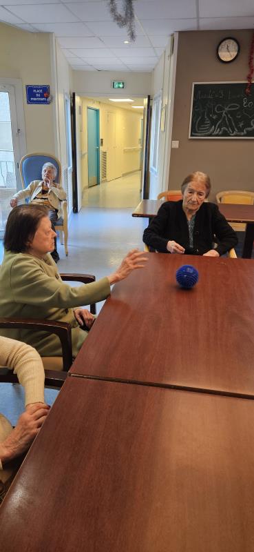 Hier matin, un atelier psychomoteur sur le thème du hockey sur table a été proposé afin de nous mettre dans le thème de la montagne d'aujourd'hui ! Pour l'occasion tous les résidents se sont installés autour de la grande table. Le but du jeu était d'empêcher la balle de tomber de la table tout en essayant de marquer un point chez les autres participants.