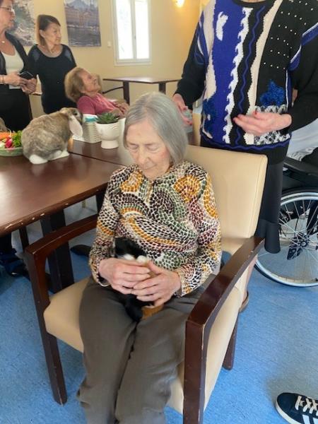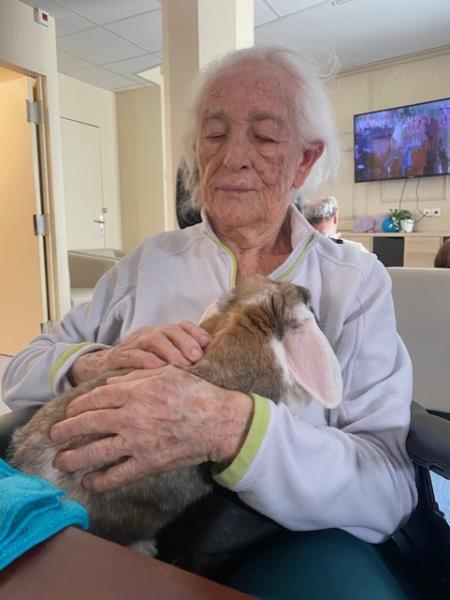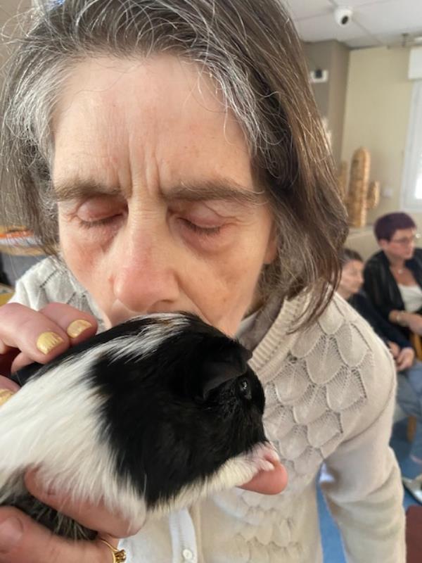 Baloo et Mowgli favorisent les échanges et éveillent les souvenirs, tandis qu’Aria invite au calme et à la tendresse. La médiation animale contribue ainsi au bien-être, à la stimulation et au maintien du lien social.