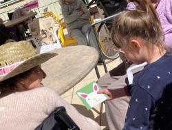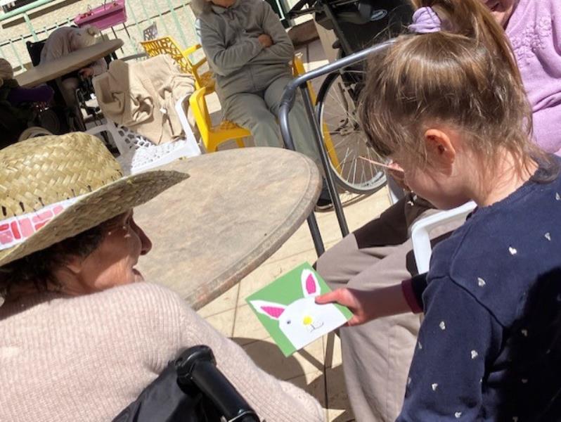 Au programme de cette belle après-midi ensoleillée: chanson des enfants sur le printemps, distribution de cartes "Joyeuses Pâques" réalisées par les enfants pour les résidents, chasse aux œufs, gouter partagé et grande boum improvisée sur la terrasse de la résidence.