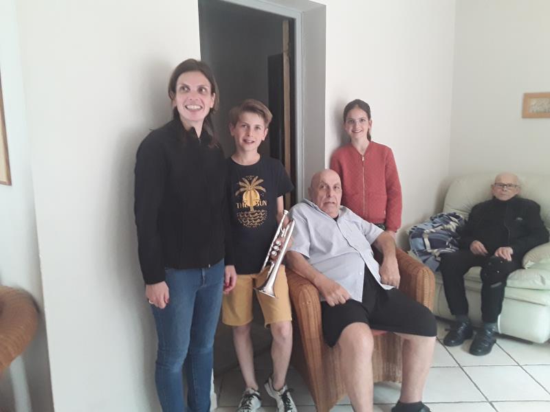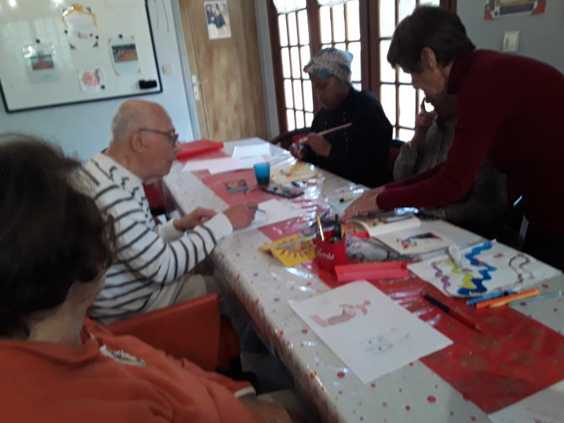 L'une de nos résidentes, ancienne enseignante de travaux manuels nous a proposé ce matin un atelier créatif. Beaucoup d' échanges, de rires et de discussions autour de ce bel atelier La journée s'est poursuivie avec l'intervention d'un jeune trompettiste, petit fils d'un autre résident de l'accueil de jour. Nous n'oublions pas le moment gourmand : cidre et tartes aux fraises offertes étaient de la partie.