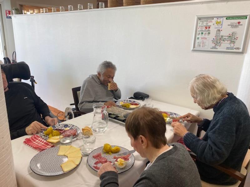 Résidents et personnel se retrouvent autour de la table pour partager ce moment ultra gourmand et convivial. Fromage qui coule, bonne humeur, rires et discussions sont au menu de ce marathon pas comme les autres.