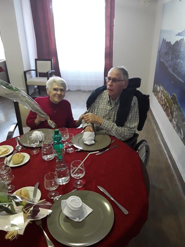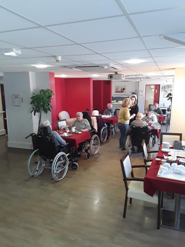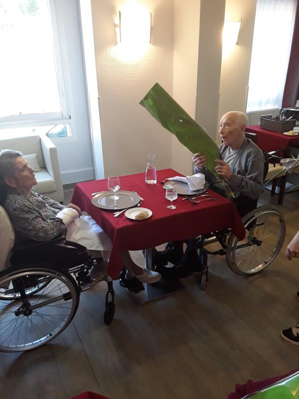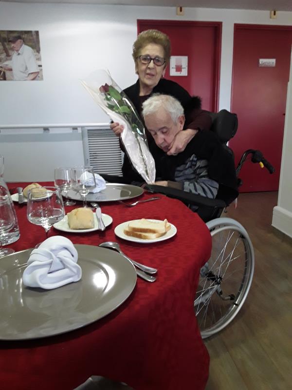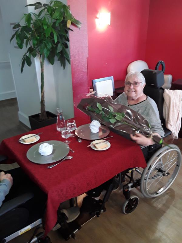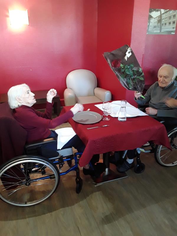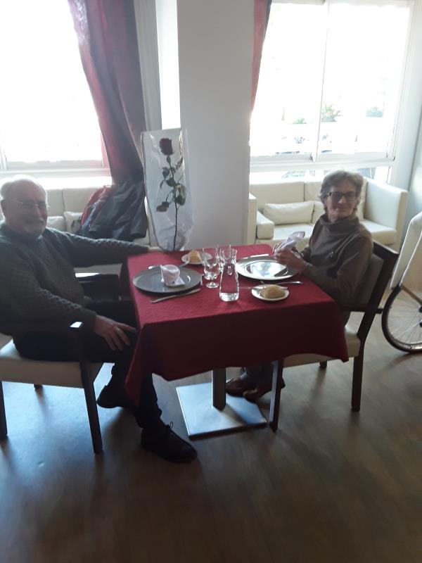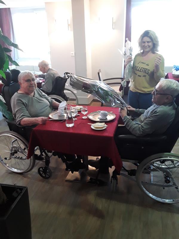 Ce midi nos résidents déjeunent en tête à tête à l'occasion de la Saint-Valentin , les Messieurs ont offert une rose à leur Valentine pour leur déclarer leur Amour