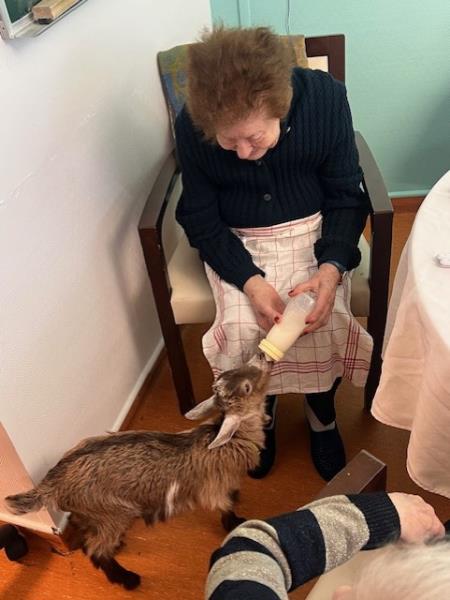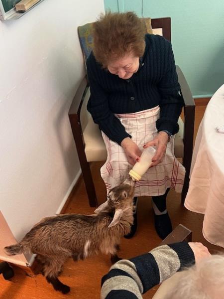 Une chevrette à l’EHPAD : un nouveau bébé très entouré