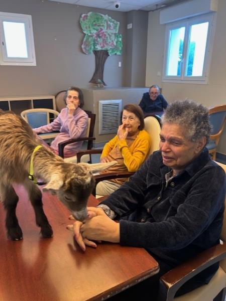 Depuis quelques jours, l’EHPAD accueille une nouvelle résidente un peu particulière : une adorable chevrette qui fait fondre cœurs et emplois du temps.